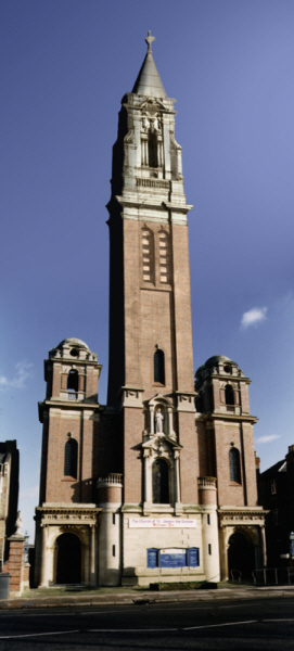 Finally, try to imagine what the church would have looked like if the West-end central tower (campanile) had been built in 1914. It was designed to be of a height equal (or just greater) than the length of the church. The photomontage to the left, created by Alex Moseley, shows what it would have been like.