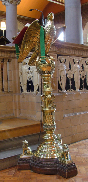 As you look towards the altar on your left is the pulpit, similar in style to one at Torcello, and on the right the brass eagle lectern donated by Mr and Mrs Pagett in 1901.