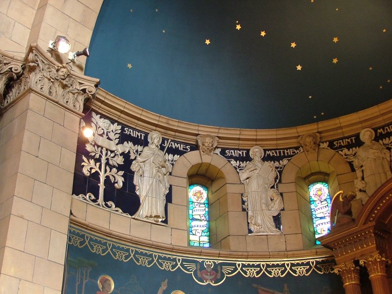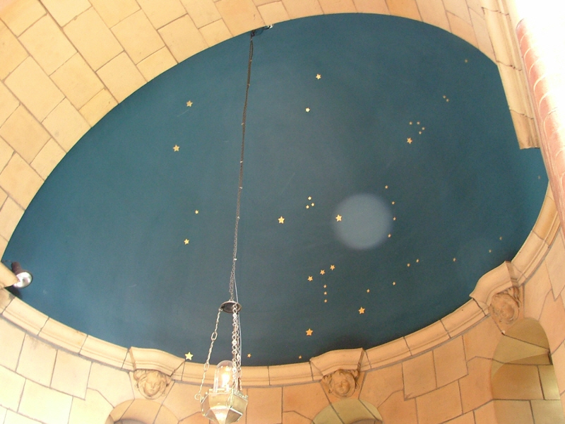 The stars painted on the ceiling of the sanctuary apse depict nine well-known constellations which can be seen when looking south on a September evening.