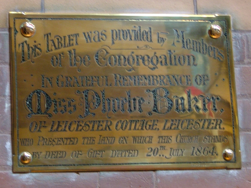 The present church was not the first church to be built on the site. Because St Peter's Church in Highfields was regularly full and overflowing, it was decided to build another church within the parish of St Peters. The land given by Phoebe Baker in 1864 proved ideal for the purpose and so a temporary church was erected in 1880 and services began in 1881.